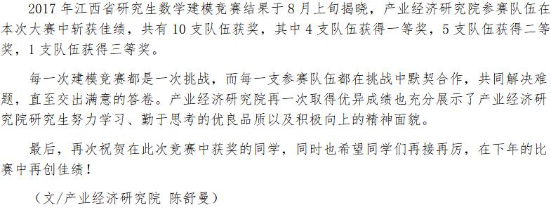 产业经济研究院在江西省研究生数学建模竞赛中斩获佳绩