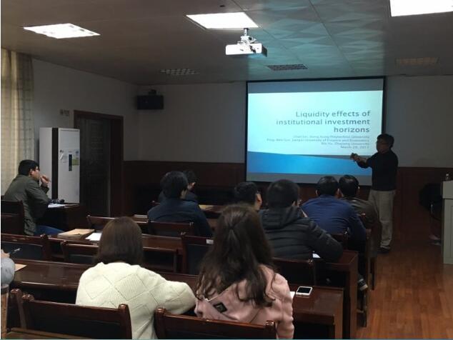 2016年3月29日下午,金融管理国际研究院孙秉文教授莅临我校金融学院,并做了题为“Liquidity effects of institutional investment horizons”的学术讲座。讲座由凌爱凡副院长主持。