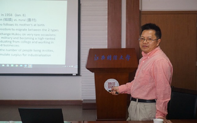 应我校产业经济研究院的邀请,2016年3月25日下午,日本神户大学赵来勋教授来我校做了题为“A Simple Model of the Chinese Hukou System and Some Ongoing Reforms”的学术讲座。产业经济研究院简泽教授主持了报告会,全体教师以及研究生参加了此次讲座。