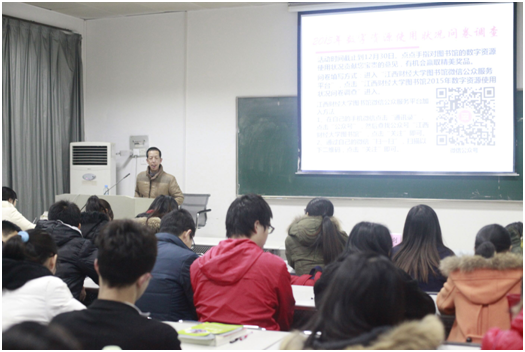 活动开始,周子剑老师先向同学们介绍了江西财经大学图书馆所拥有的相关资源,并对超星发现、中国知网等的使用问题进行了详细的解释;接着就如何有效的阅读相关文献,完成一篇高质量的学位论文进行了详细的论述,并强调开题报告对学位论文的重要性,告诫同学们应当认真对待开题报告的撰写工作;最后就文献综述的相关问题进行了细致的讲解。