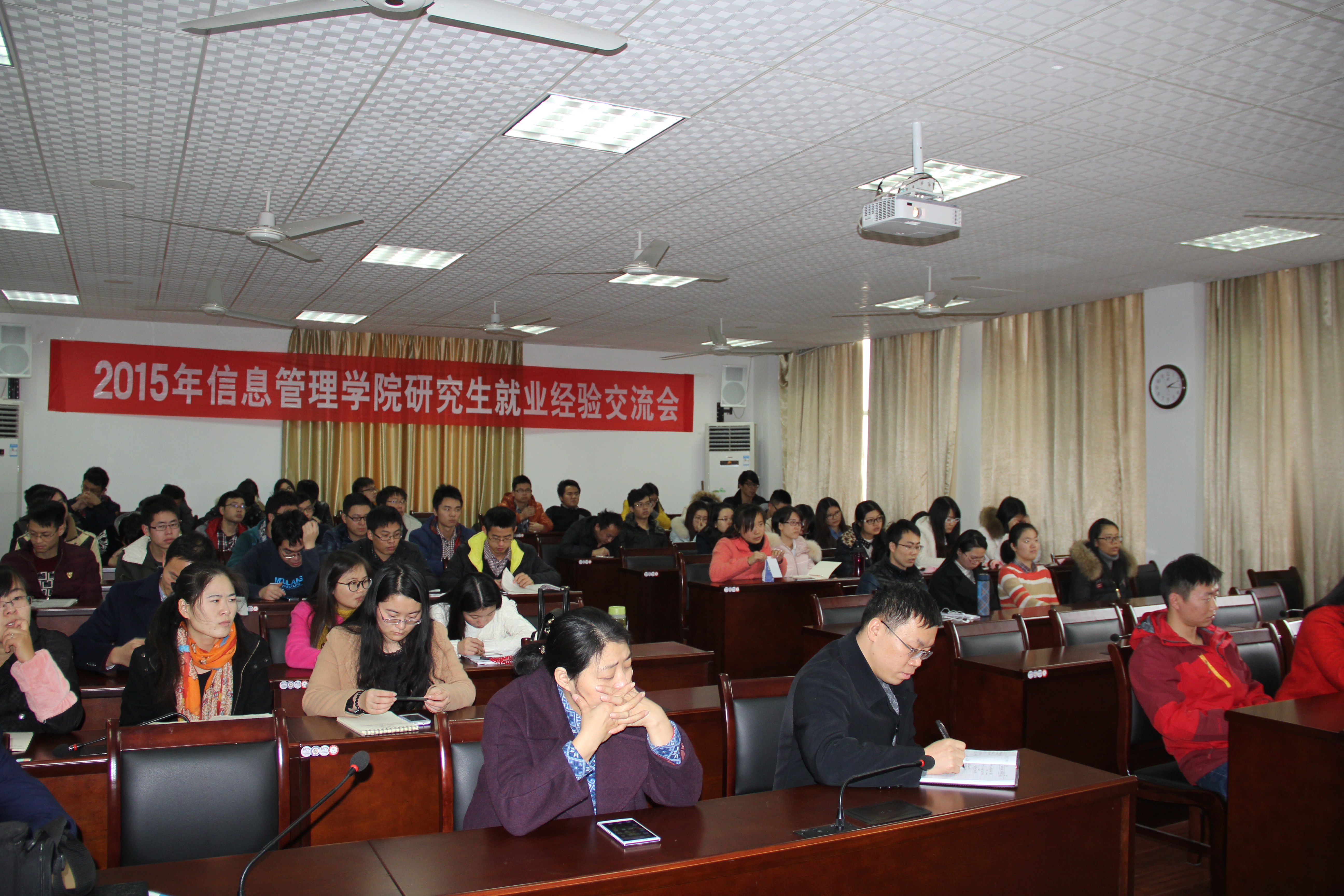 为帮助我校信管学院学生了解就业形势,提高学习热情,增强就业核心竞争力,减少就业方面的困惑,在院系领导的大力支持下,在院研究生会的精心组织下,于2015年12月15日下午14时在信息管理学院H402教室召开了2015信息管理学院研究生就业经验交流会。出席本次交流会的领导和老师有信息管理学院副院长沈波、研究生教学秘书李红老师和李勇老师。