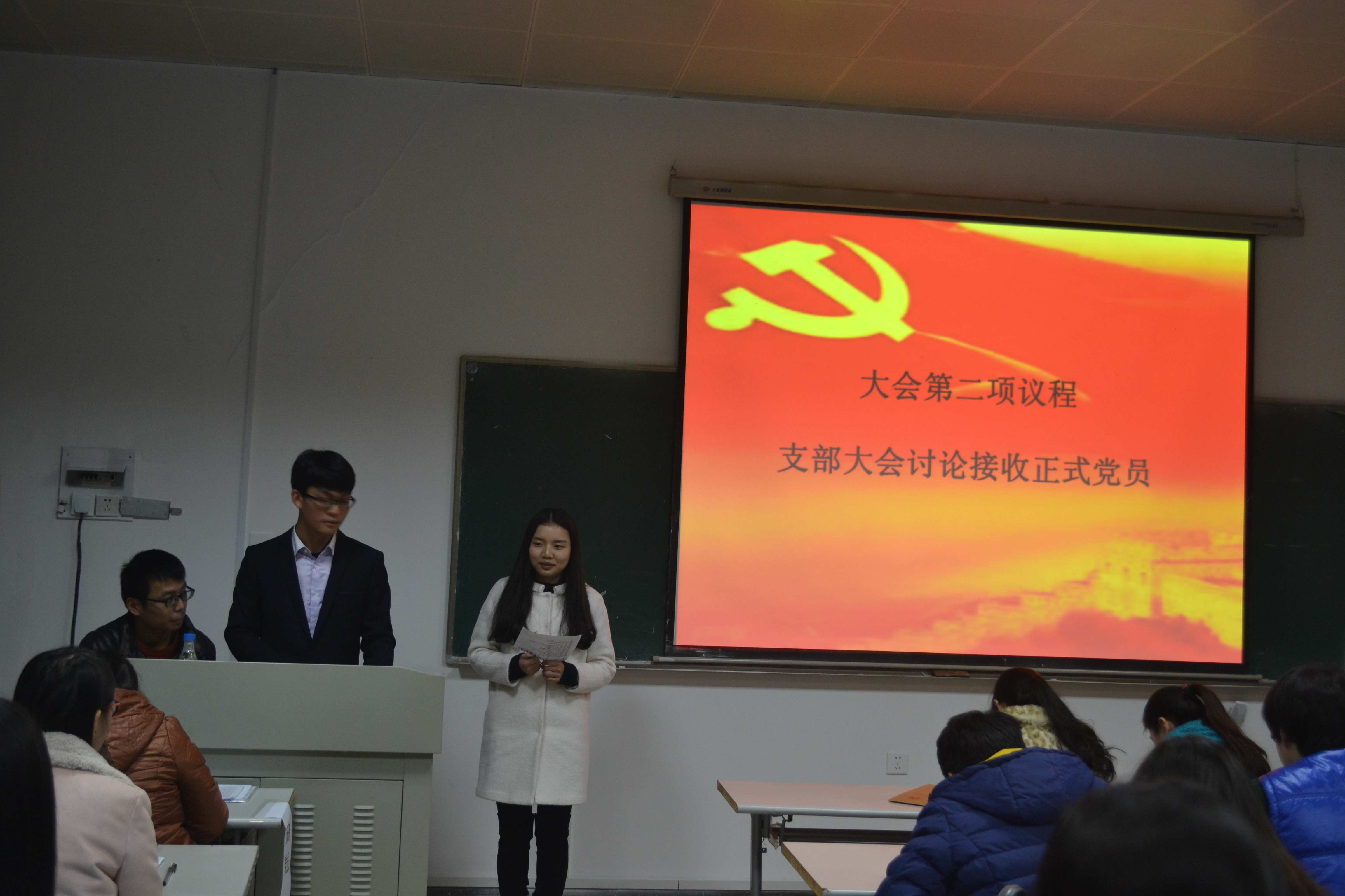 为向会计学院研究生党支部输送新鲜血液,发挥好研究生党员的先锋模范作用和战斗堡垒作用,进一步推动党员队伍建设,将党的优良传统作风带到学术科研生活中,不断增强研究生党员的凝聚力与战斗力,会计学院研究生党支部于2015年12月13日下午六点半在研究生楼502教室隆重举行了党员发展大会,支部正式党员、预备党员和入党积极分子共100余人参加了此次会议,大会由支部副书记李晨睿同志主持。