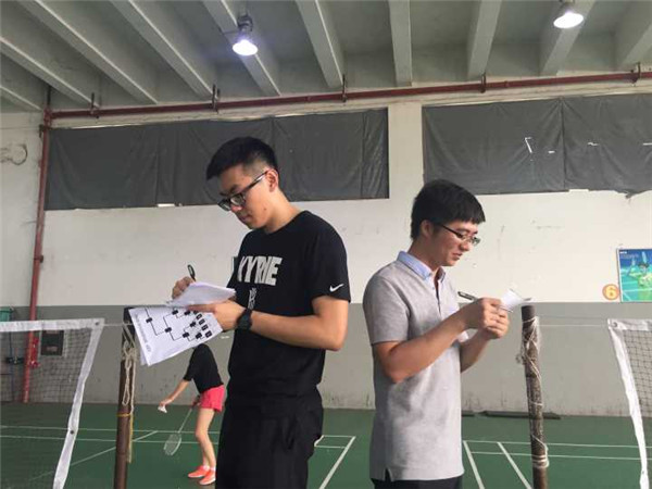 为了营造一个舒适的比赛环境,优化比赛进程,提高效率,比赛在四个场地上分别上演。赛前,各位参赛选手互相对打热身。选手们个个跃跃欲试,一派热闹的场景。随后,依据抽签顺序,比赛正式开始。在一、二轮淘汰赛中,选手们个个精神抖擞,劈杀、挑球,各种绝技尽显;击球、挥拍,动作一气呵成。场外的观众们也纷纷为自己的队友助威加油,为每一个球的化险为夷而激动不已,“好球”的喊声不断。