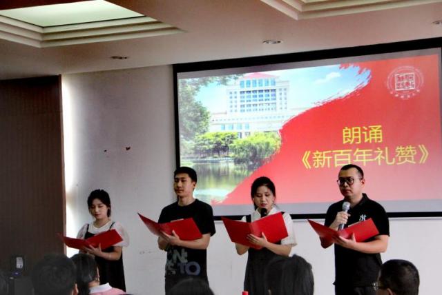 马克思主义学院研究生随后带来原创诗朗诵《新百年礼赞》,回顾了中国共产党的百年奋斗历程和伟大贡献,展望了党团结和带领全国各族人民迈向中华民族伟大复兴的光明前景。诗朗诵既是对党百年华诞的赞歌,也是对新生深刻的入学教育课。