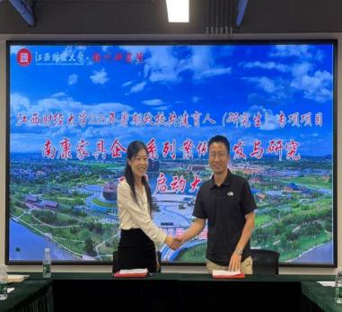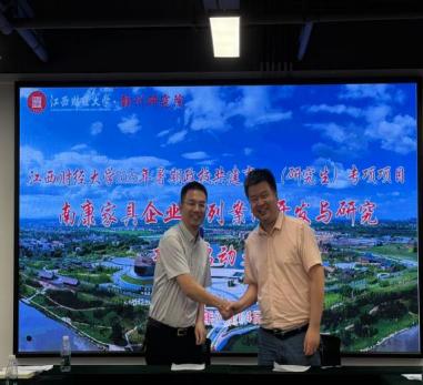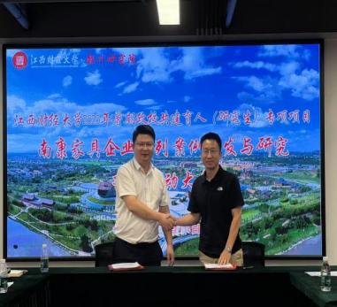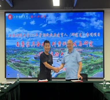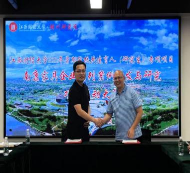 随着各项合作共识的逐步凝聚,现场迎来了庄重而热烈的签约仪式,项目组成员分别与南康家居产业服务中心、全球通家具、七喜家居、南康家具新中心、富龙皇冠、爱扬家具、城发智能制造、团团圆家具、仟亿酒店家具等项目代表郑重签署产学研合作意向书。