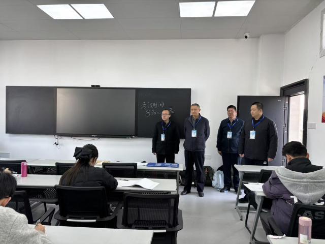考试期间,校党委书记刘耀彬亲临考场督查指导,实地查看考场布置、监考履职规范及考生作答状态,强调要严守考试纪律、筑牢保密防线,以严谨细致的工作作风保障考试公平公正。