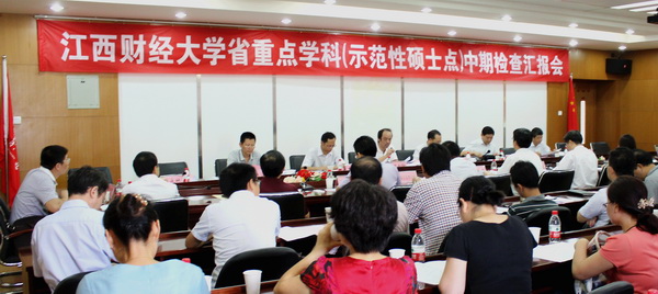 办公室主任王殿元、江西省政府学位办主任科员叶国光组成的专家组一行6人,对我校公共管理、法学、社会学、马克思主义理论、计算机科学与技术、工商管理、农林经济管理7个省“十二五”重点学科(示范性硕士点)进行中期检查。副校长蒋金法,副校长易剑东,人事处、财务处、科研处、图书馆等职能部门负责人,各省重点学科(示范性硕士点)所在学院的院长、分管副院长、研究生秘书,研究生院全体人员参加汇报会。